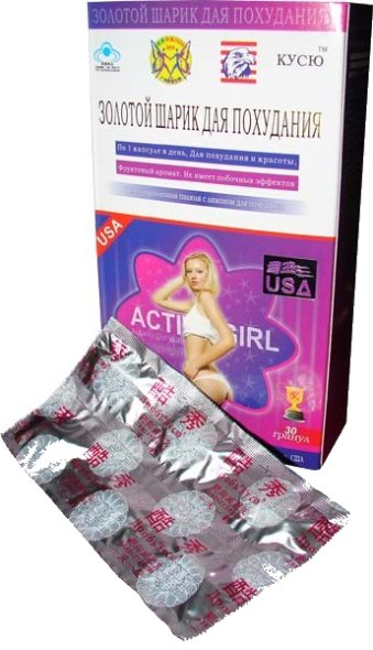 Таблетки для похудения Золотой шарик не имеют подвидов – они выпускаются в одном-единственном варианте. Имеют красивое оформление – коробка сине-розового цвета, на которую нанесено изображение красивой девушки. Производится компанией «КУСЮ», создается по американской технологии.
